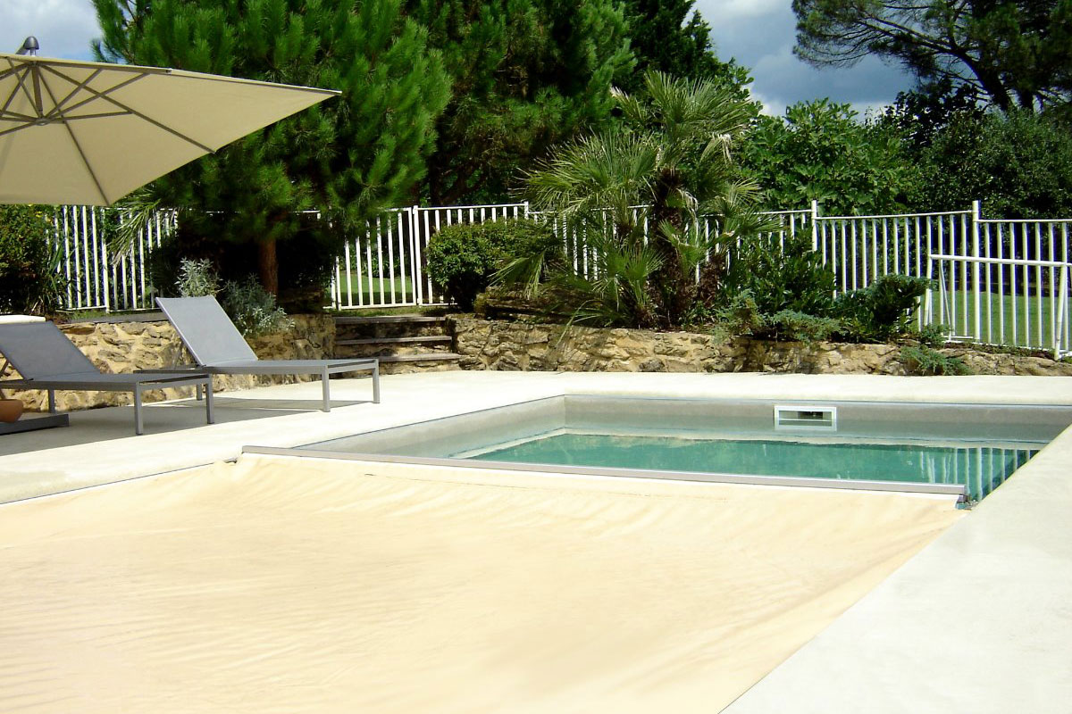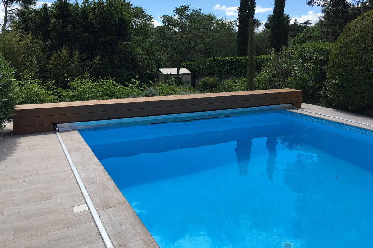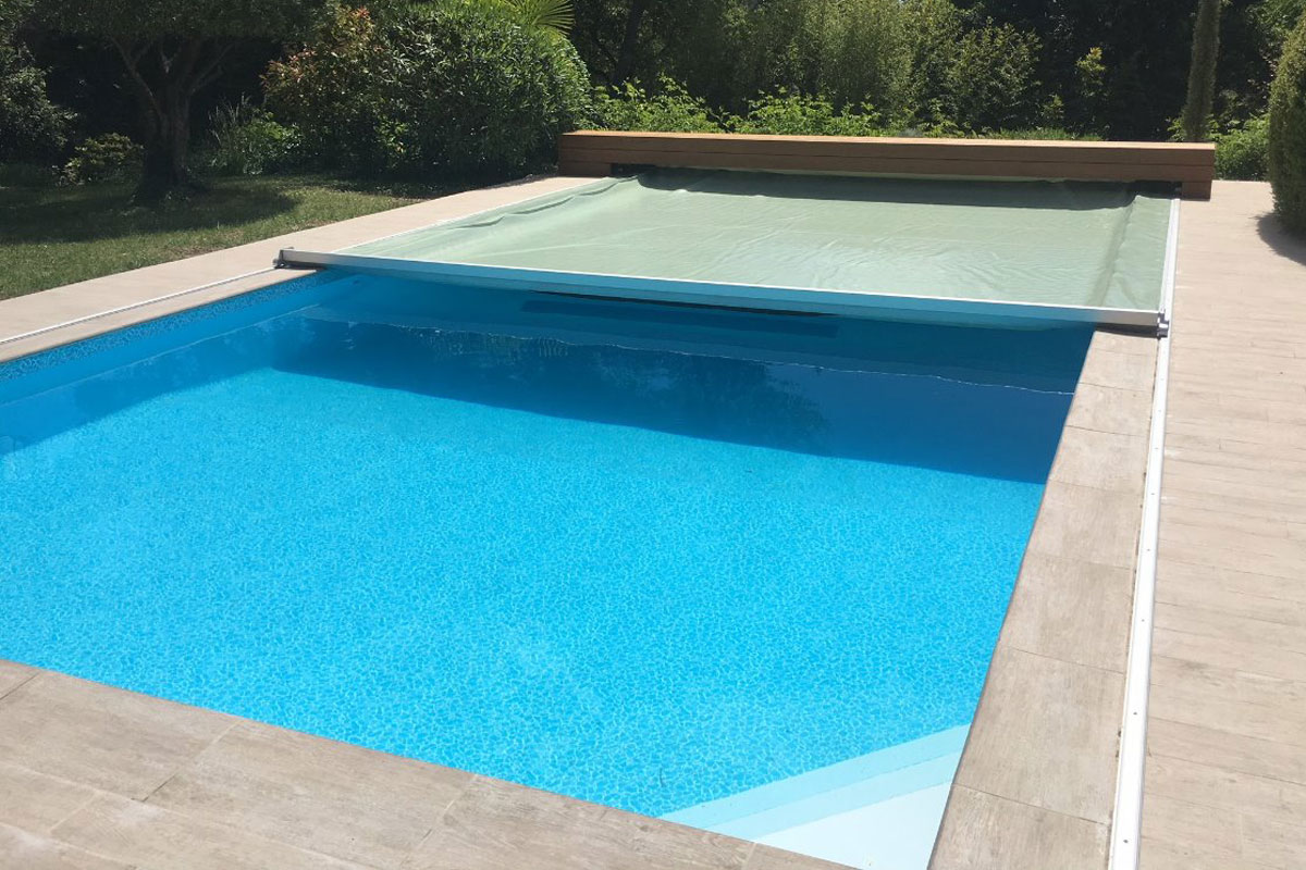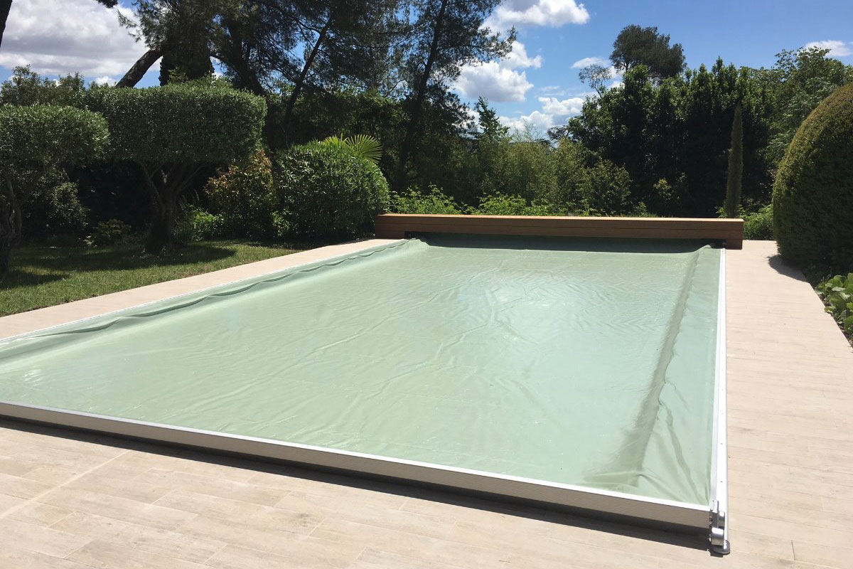 Im Gegensatz zum klassischen Rollschutz wird die Abdeckung automatisch über ein hydraulisches System bewegt und spannt sich gleichmäßig über die Wasseroberfläche. Dadurch entsteht eine besonders stabile und sichere Poolabdeckung.