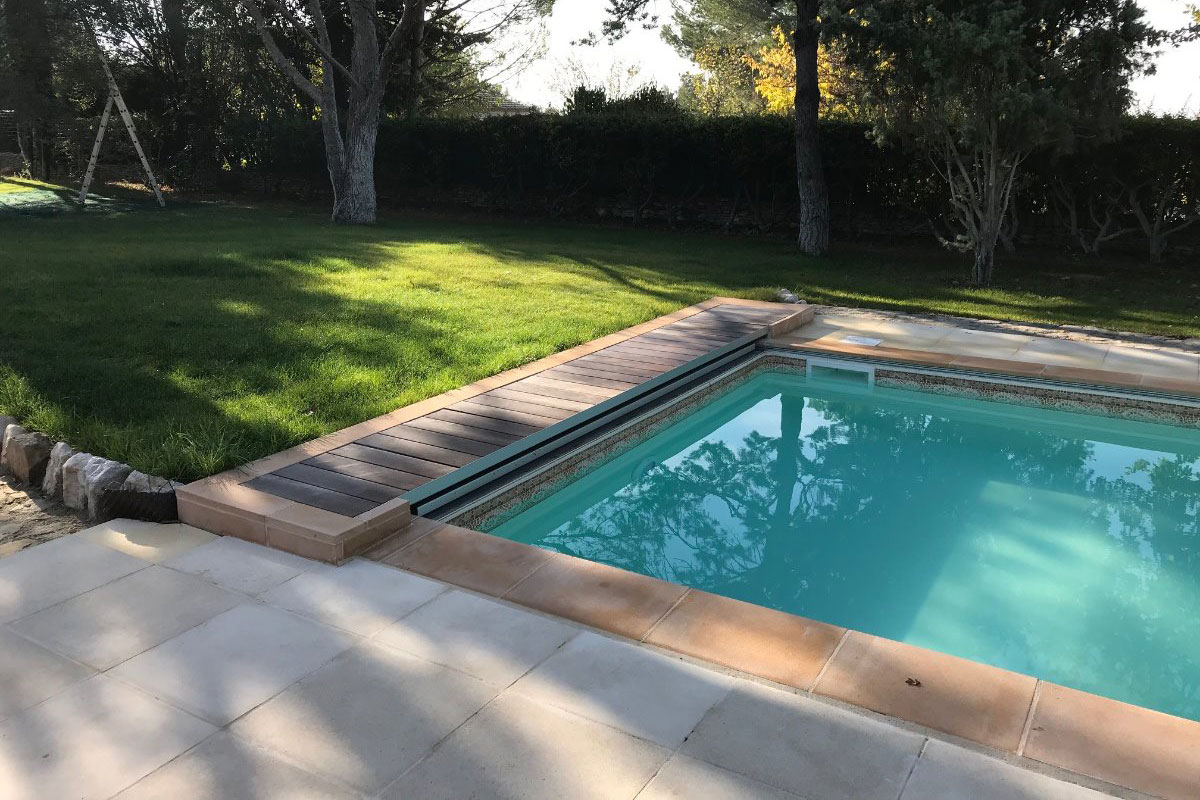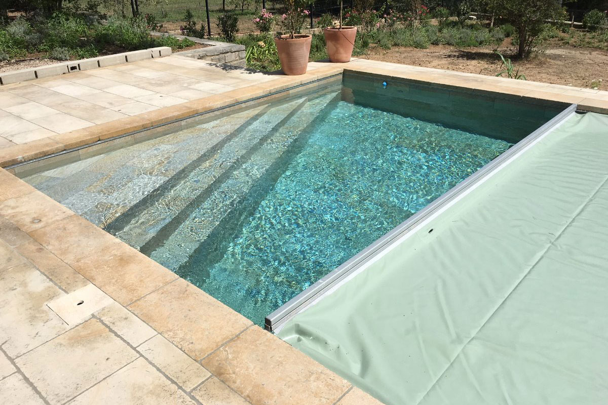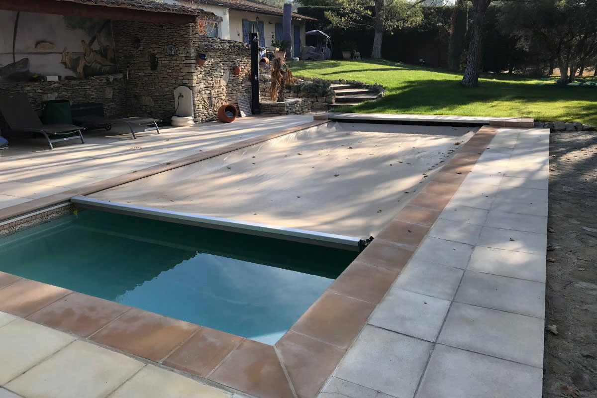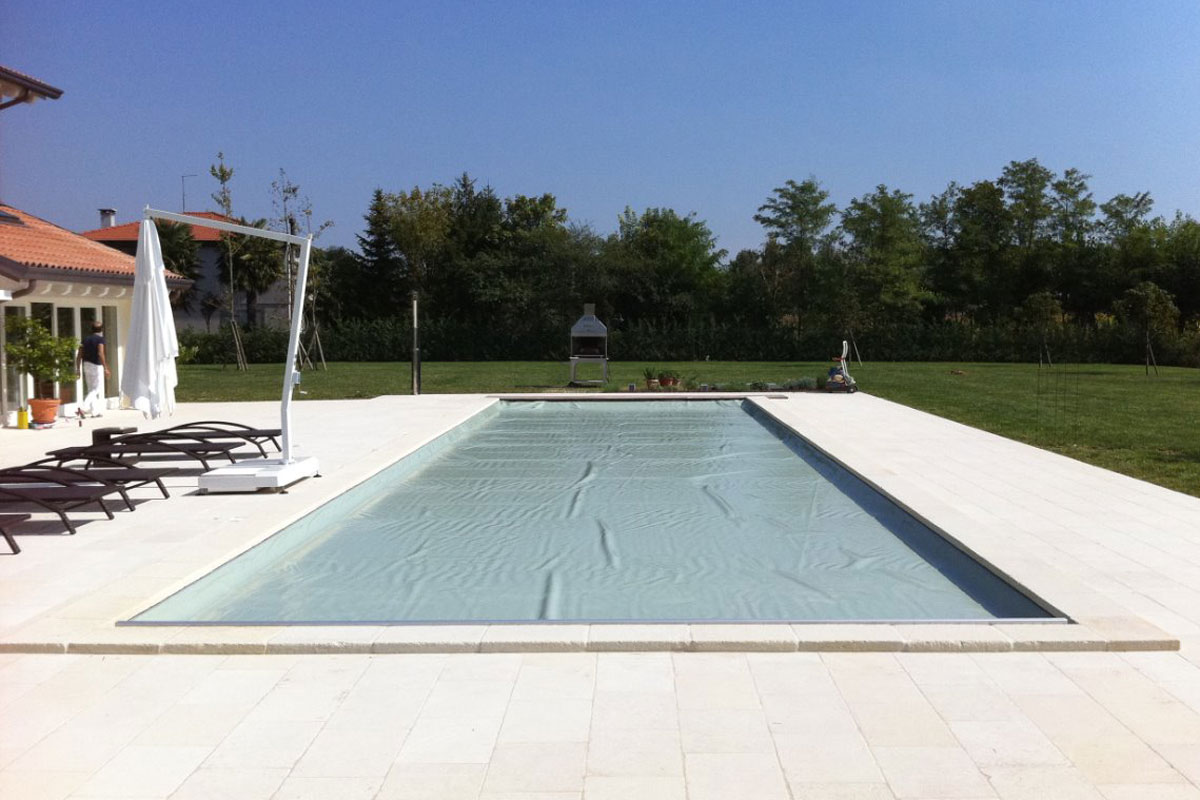 Im Gegensatz zum klassischen Rollschutz wird die Abdeckung automatisch über ein hydraulisches System bewegt und spannt sich gleichmäßig über die Wasseroberfläche. Dadurch entsteht eine besonders stabile und sichere Poolabdeckung.