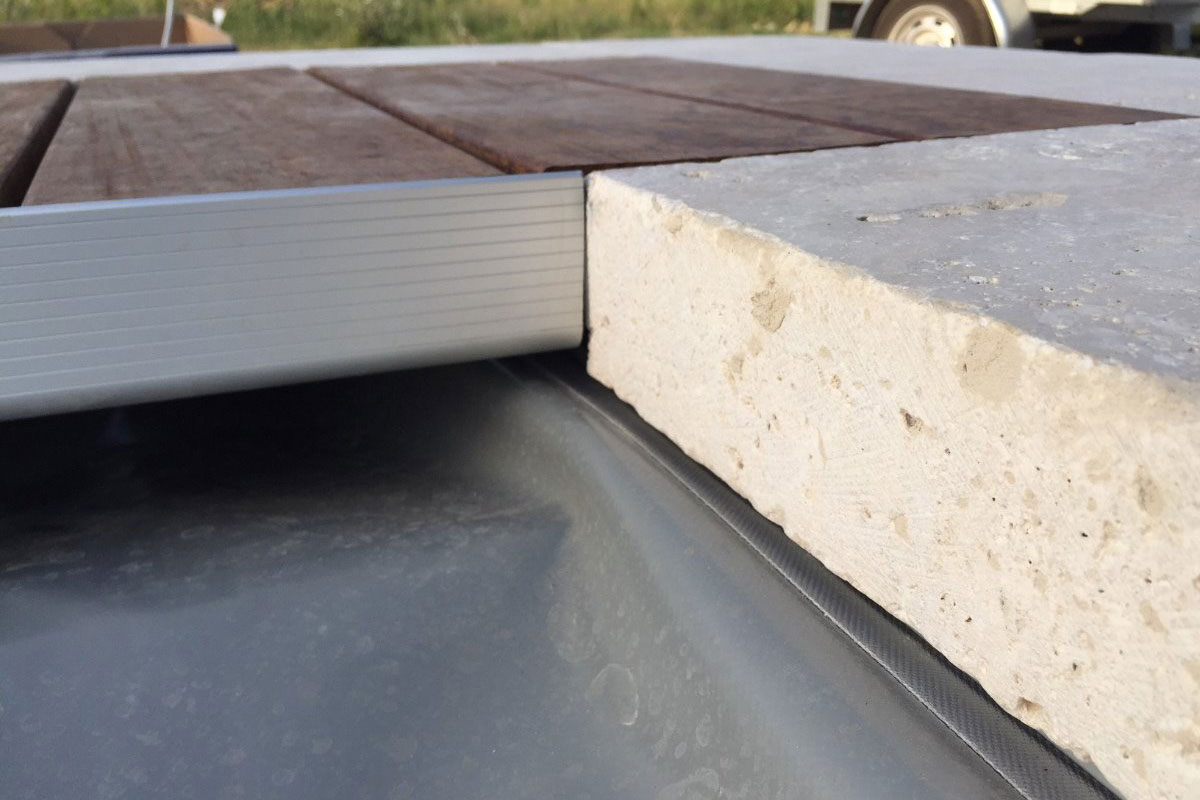 Die Trägerrohre sind auf der Oberseite in Laschen eingeschweißt und liegen komplett auf den Randplatten auf. Der Rollschutz im Randbereich ist an der Unterseite mit weichem PVC-Material verstärkt. Dadurch werden vor allem Kunststoffbecken und hochwertige Randplatten vor Abrieb und Kratzern geschützt. Für mehrseitige Beckenformen werden Steckverlängerungen verwendet.