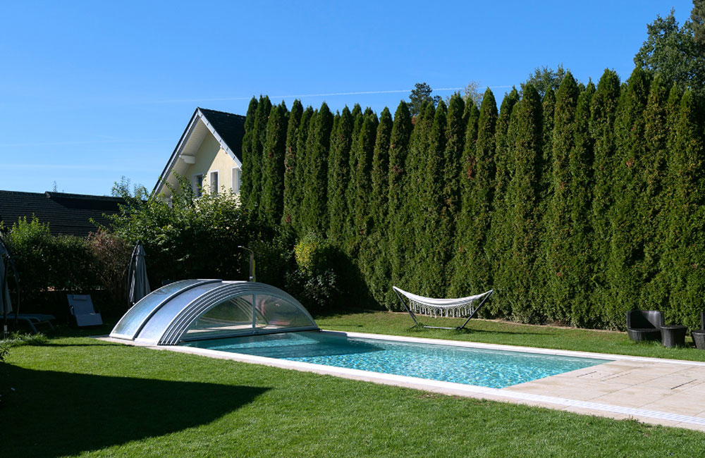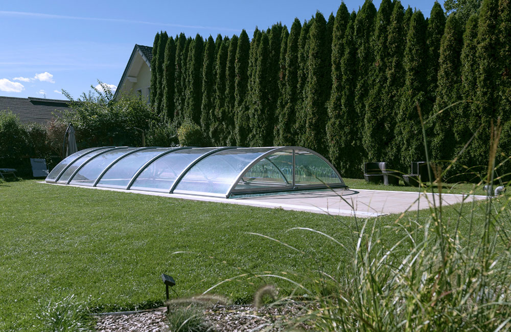 Die Poolüberdachung in Rundbogenform, ein zeitloser Klassiker, bietet höchsten Nutzwert, großzügigen Raum und zahlreiche Variationsmöglichkeiten in Größe und Ausstattung.