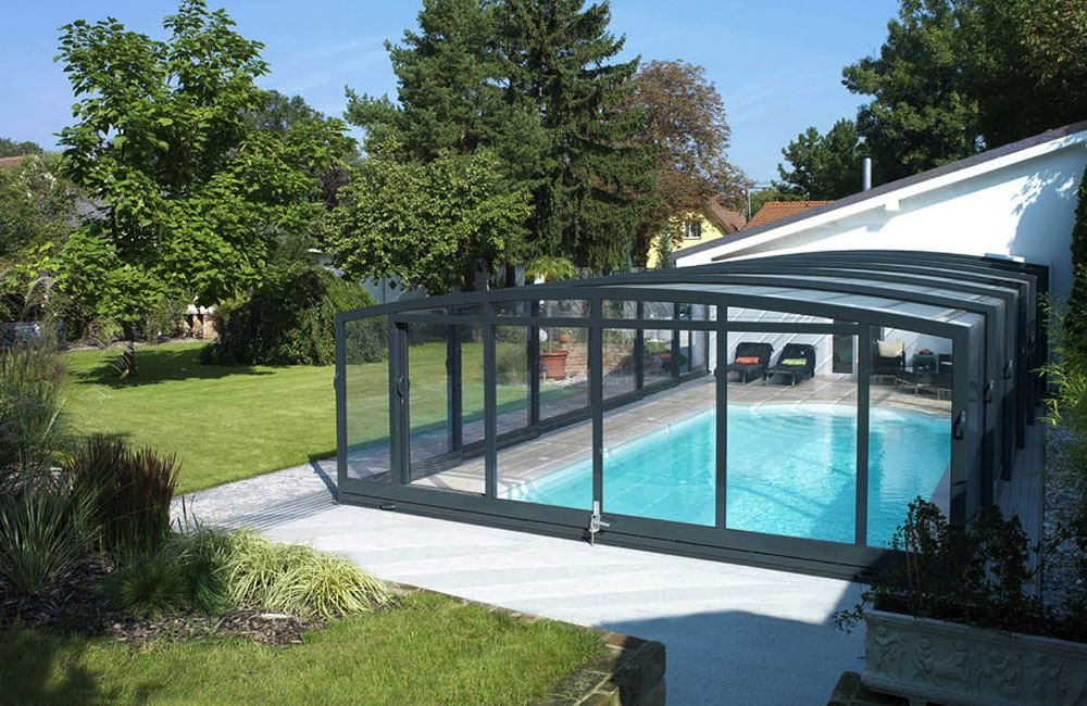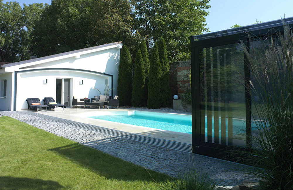 Die imposante Überdachung für Ihren Pool präsentiert sich in einer modernen und klaren Formensprache.
