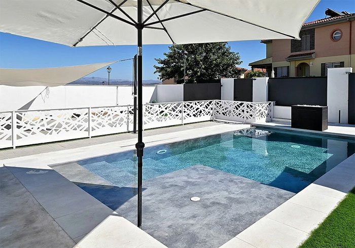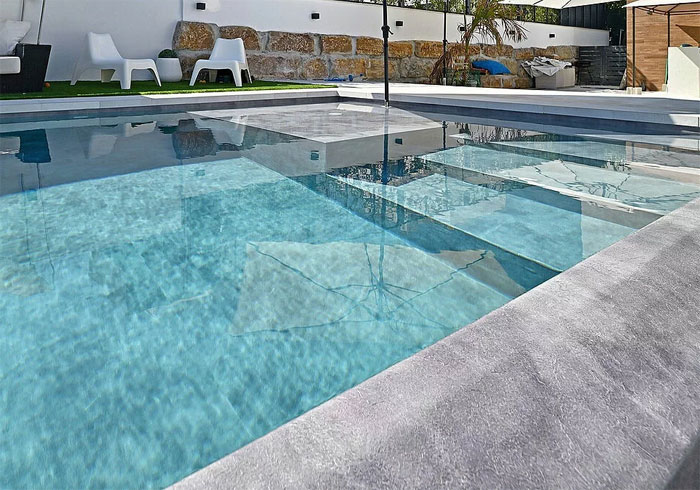 Diese Oberfläche zeichnet sich nicht nur durch ihre ästhetische Anziehungskraft aus, sondern ist auch äußerst funktional. Sie ist flexibel und widerstandsfähig mit einer Stärke von 1,8 mm, was eine uneingeschränkte Gestaltungsfreiheit für jeden Pool ermöglicht.